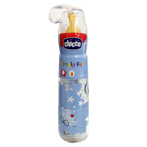 chicco biberon vetro celeste simply fun 0+ 250 ml